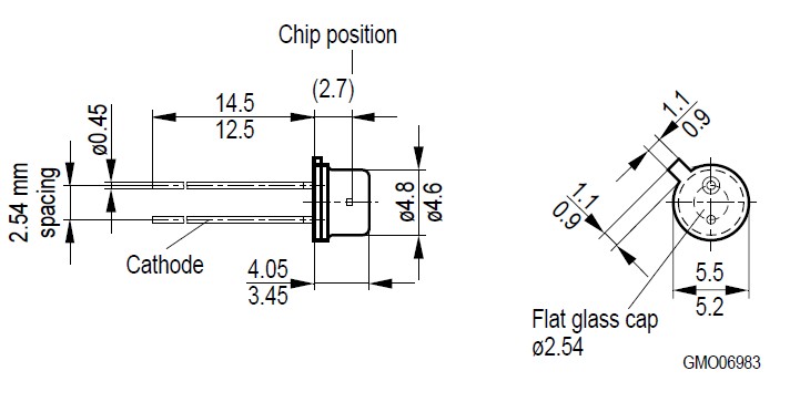 The SFH4860 is a GaAlAs Light Emitting Diode. Applications include: Photointerrupters, Hermetically sealed package.